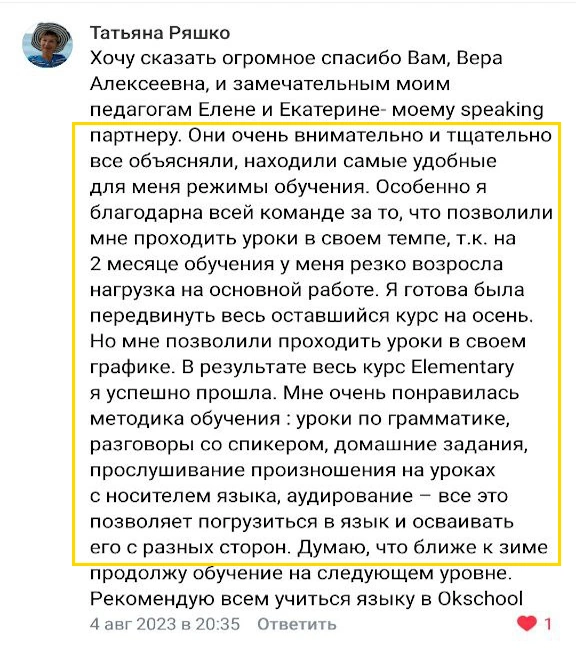 Индивидуальное, а не конвейерное обучение. В OKSCHOOL работают только дипломированные специалисты